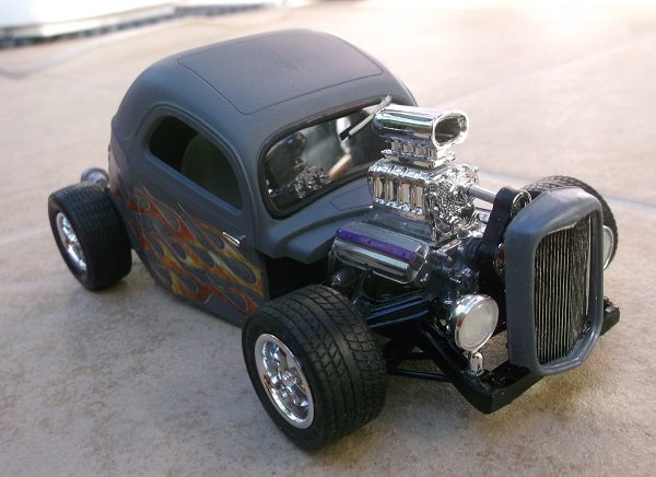 This began with a leftover 36 Ford roof. The body is shaped from sheet plastic.