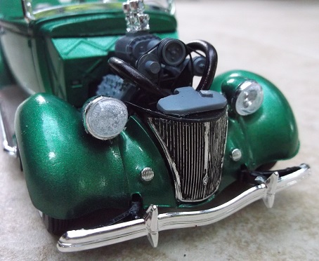 The flathead engine parts are from an after-market resin shop. The radiator hoses are speaker wire.
