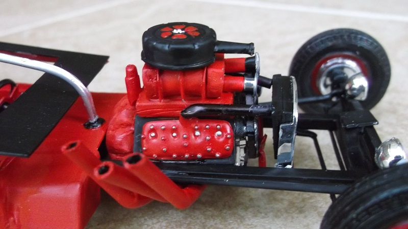 engine parts. The block was cut out of sheet plastic, the supercharger was made from