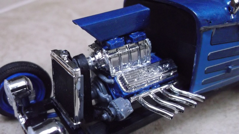 and cut it up and made it look like a bucket. I custom built the frame and air scoop on the engine out of plastic.