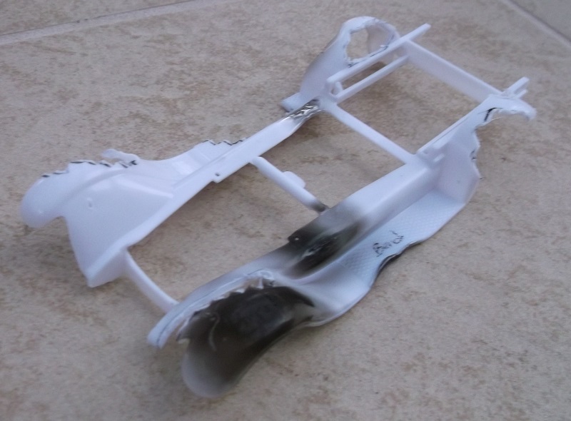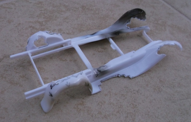 First, I took a torch to the fenders to buckle the plastic and a hotknife to make jagged cuts.