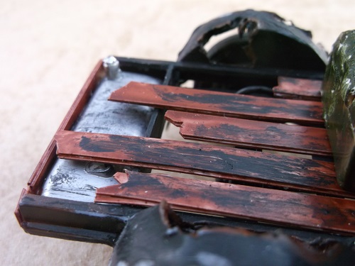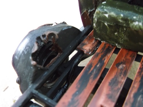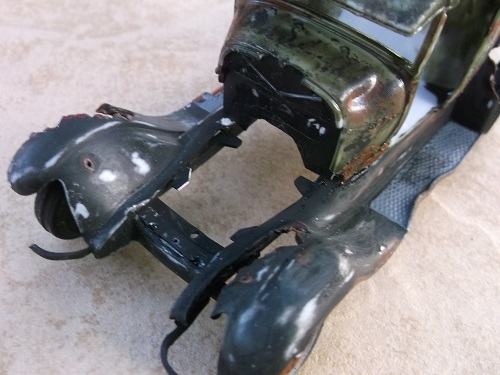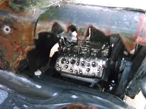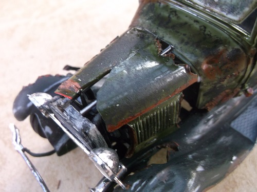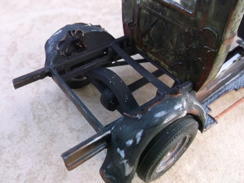 I glued in a thin metal rod under the running board to make it look like just the skeleton survived.