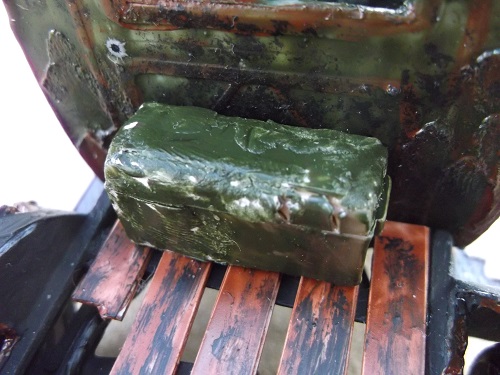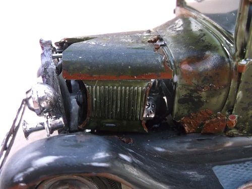 To get the rusted look on the radiator and body, I smeared on spackle and painted over it.