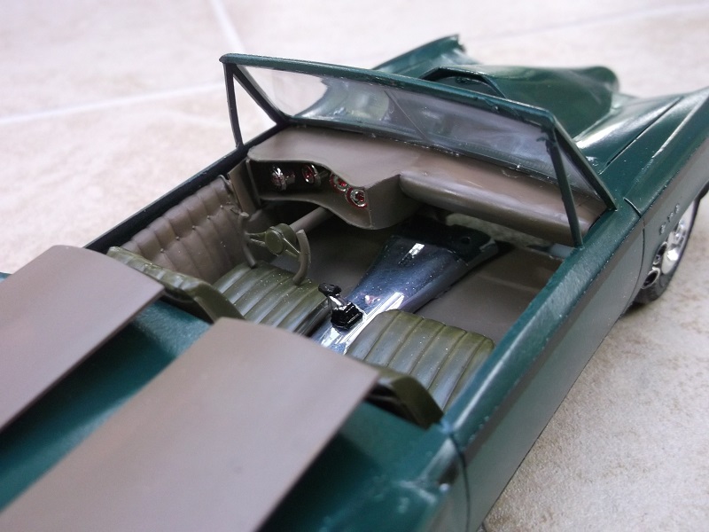 I created the dash out of sheet plastic, cut the steering wheel and used some custom gauges.