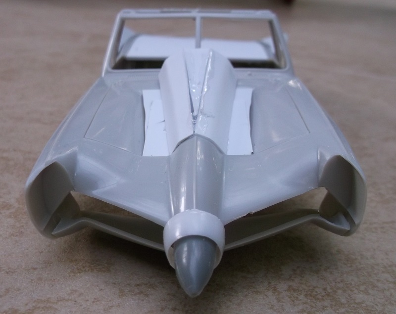 I built up the hood and added a bullet for the nose, which is a part of an aircraft bomb.