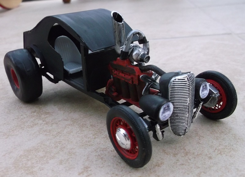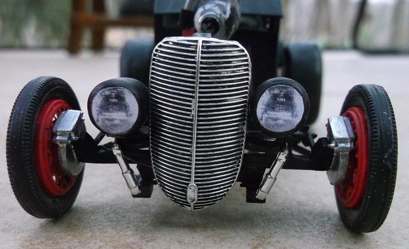 The rear tires were formed out of clay. The rear lights are from a Nova.