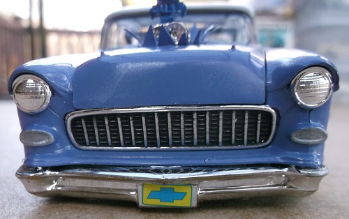 For this 55 Chevy I wanted to make it look like the engine was busting out of the hood