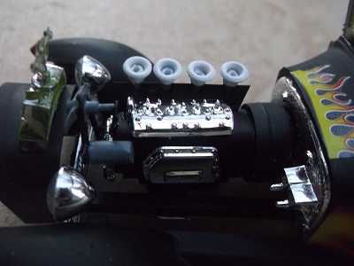 I fabricated my own engine around a chrome flathead cylinder I had.