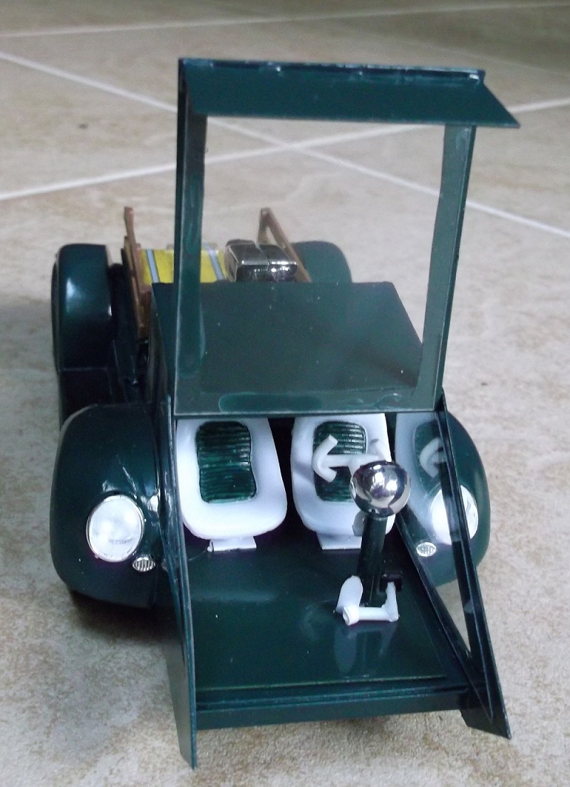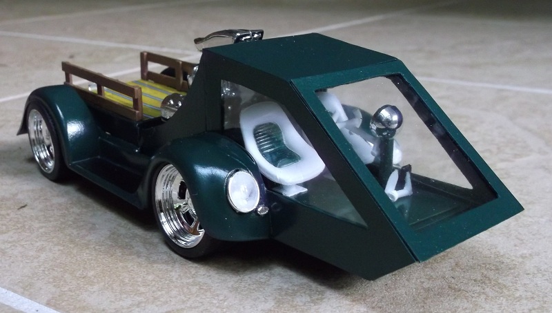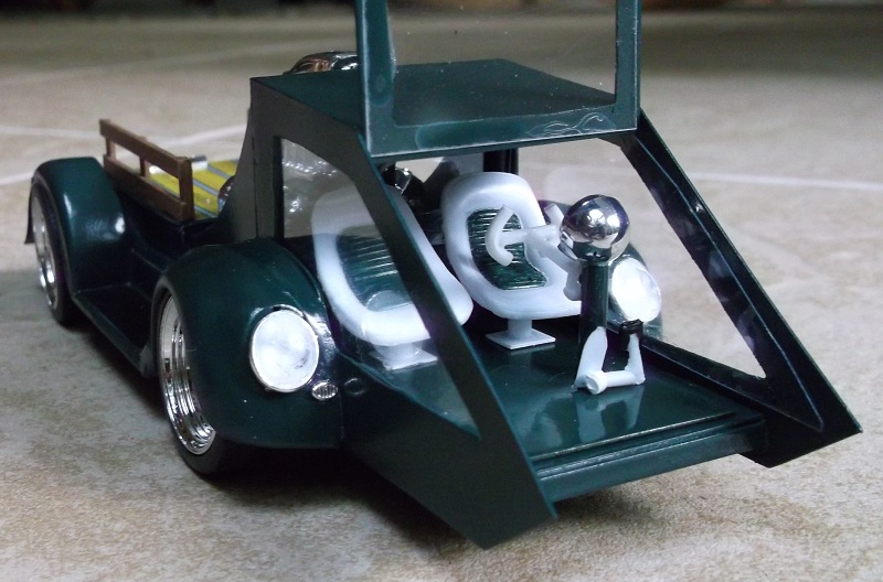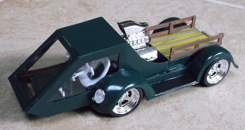 I used 1968 VW bug front fenders, 1930 rear fenders and a custom body and interior made from sheet plastic.