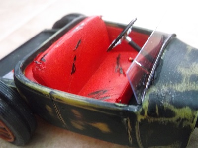 I wanted to make the seats look ripped up, so I took my hot knife and made some cuts.