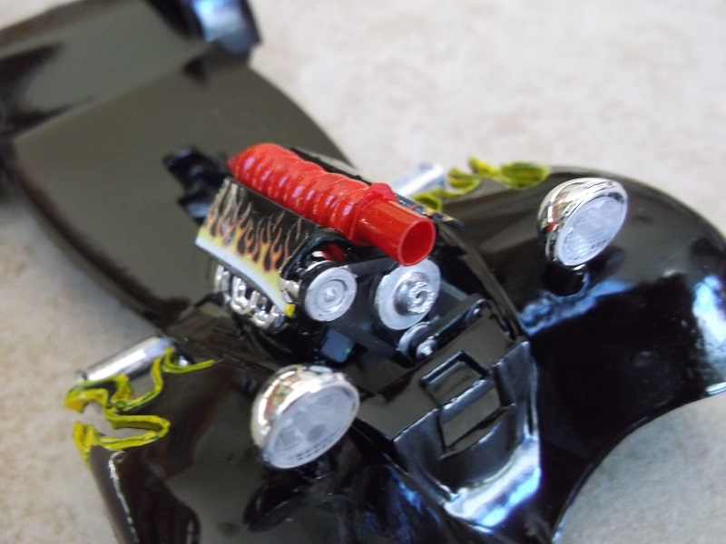 I used a hot knife to cut out flames from the fenders, created a modern fuel injection manifold