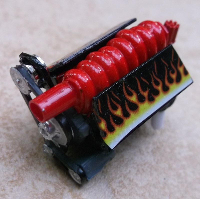 using speaker wire, created flamed valve covers and created some flame accents out of sheet plastic.