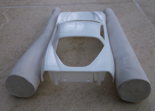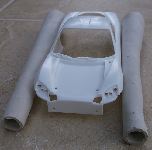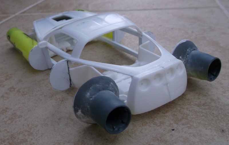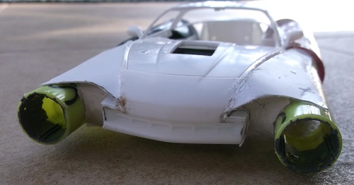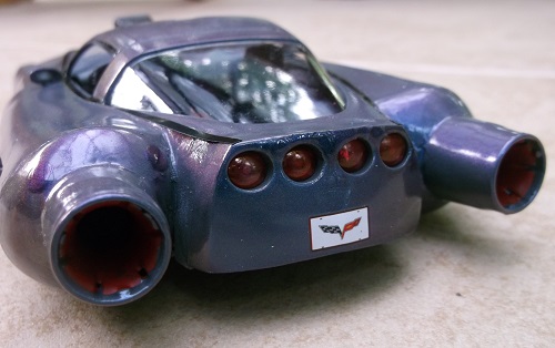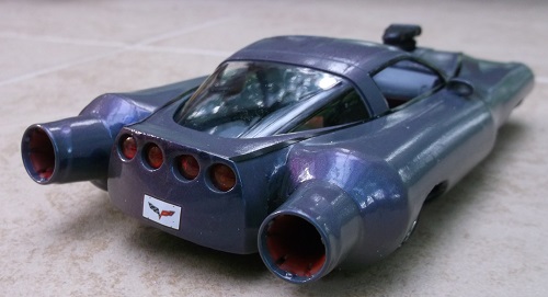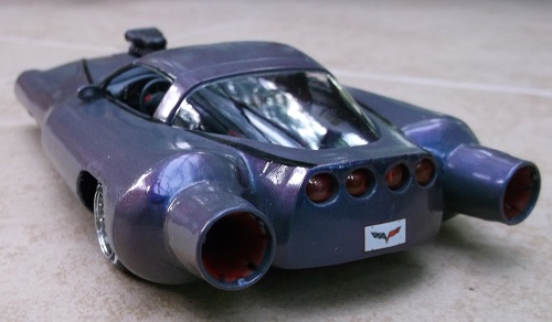 Here I wanted to take a late model Corvette and turn it into a rocket car of the 60s.