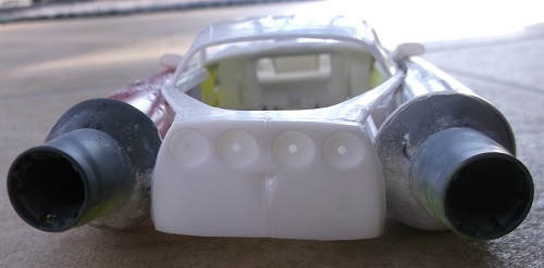 The front rocket compressors were made from bombs attached to plastic and clay.