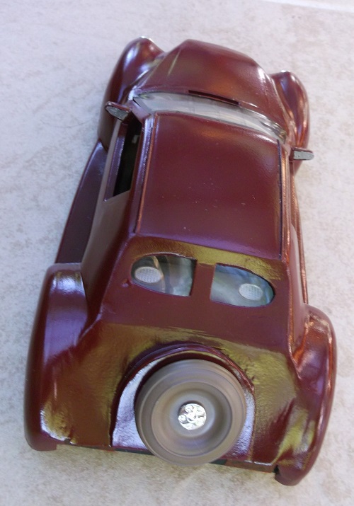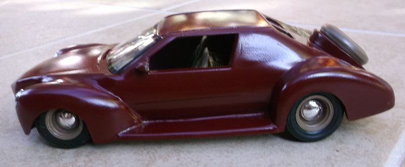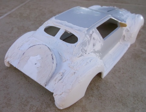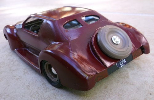 I added a continental spare tire to the rear deck and used a lot of spackle.