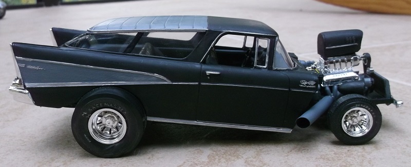 This is a rat rod 57 Chevy Nomad. The inspiration came from a real car in a rat rod