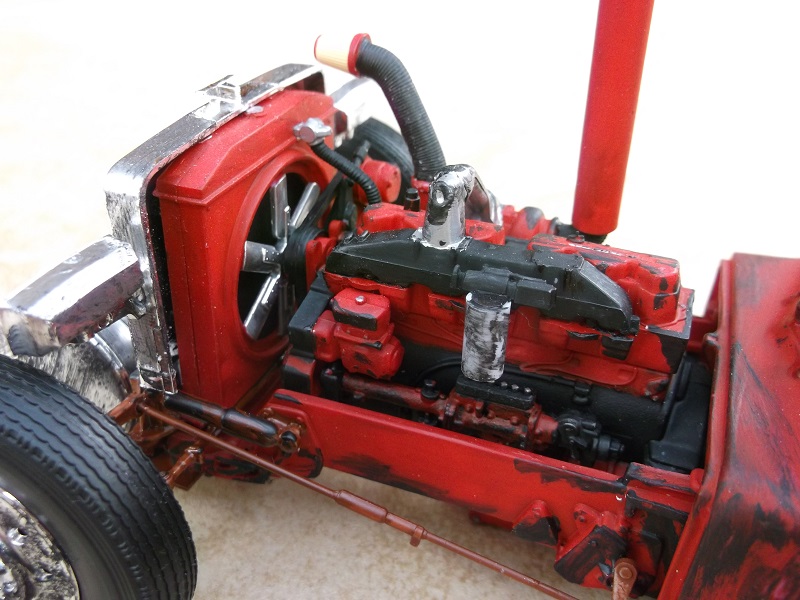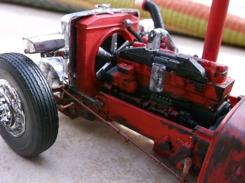 This model comes with a beautiful turbo diesel engine. I added the exhaust stack from plastic tubing.