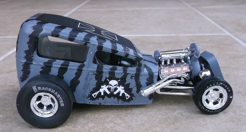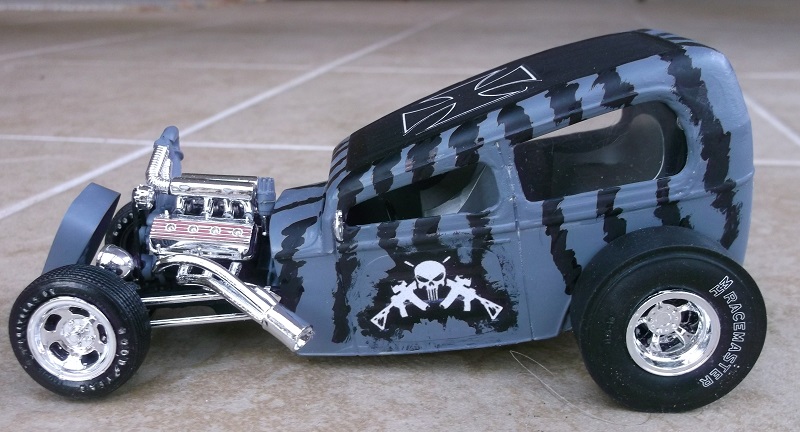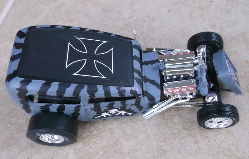 The engine is a home made Frankenstein hemi with a belt driven supercharger forcing air into