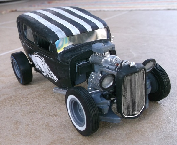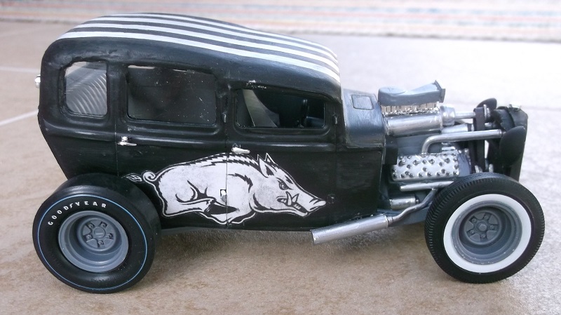 The body was built from 2 32 Ford 5 window coupes. I stretched it into a sedan and removed the trunk.