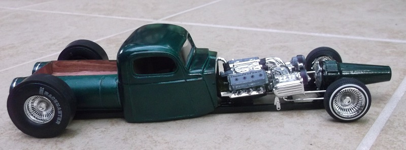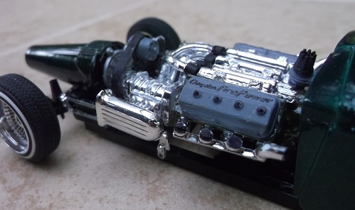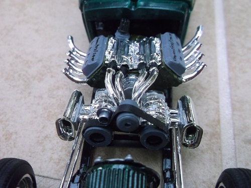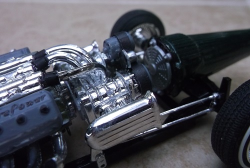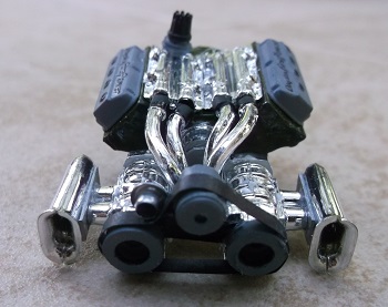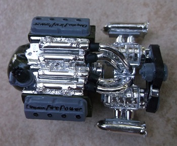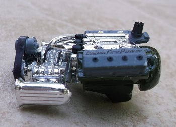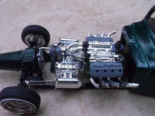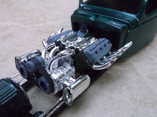 I made a hemi engine block out of plastic and clay and used some leftover engine parts.