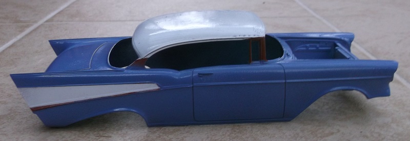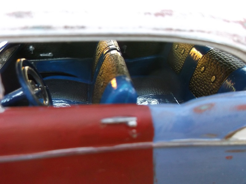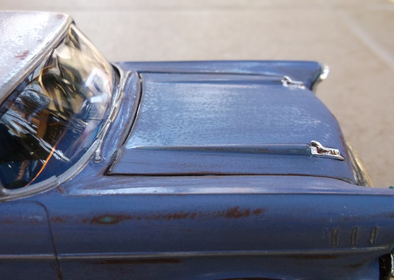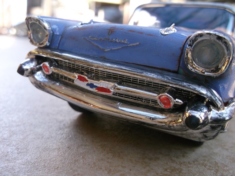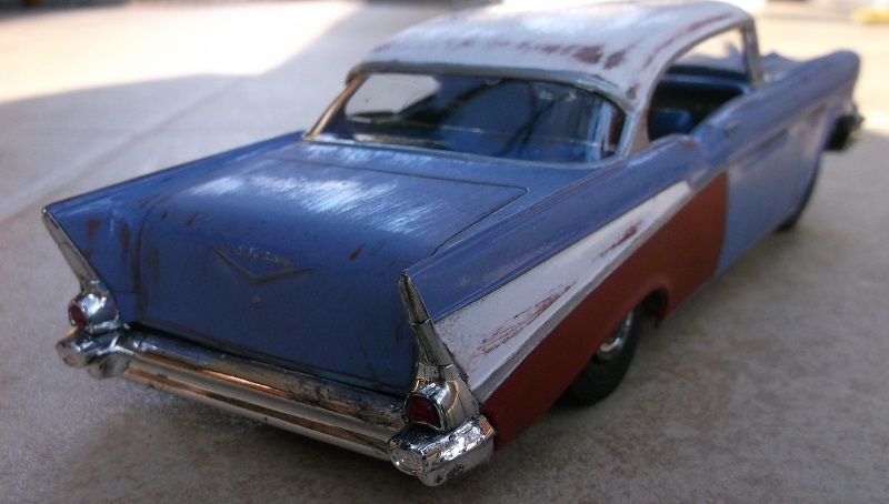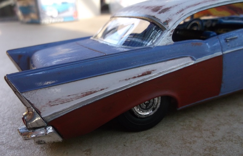 To rust out this 57 Chevy, I first painted the entire car a rust color,