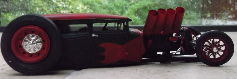 Here's a Model A sedan rat rod with several mods. First I chopped the roof.