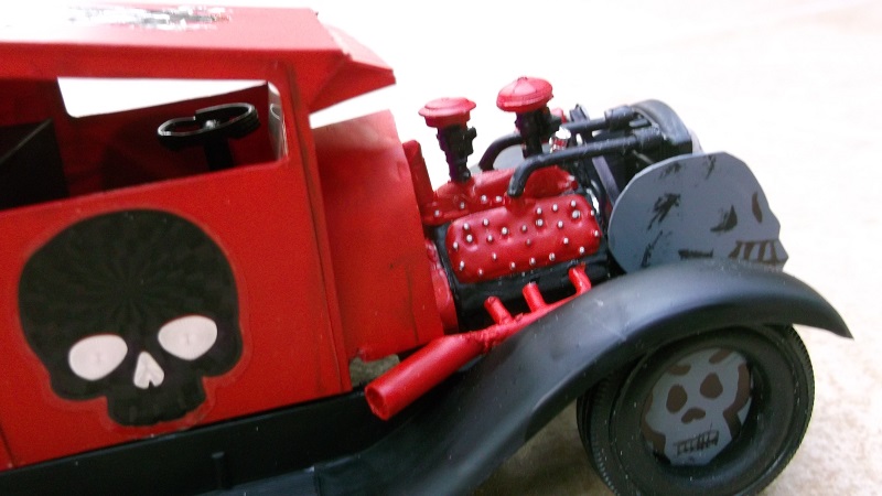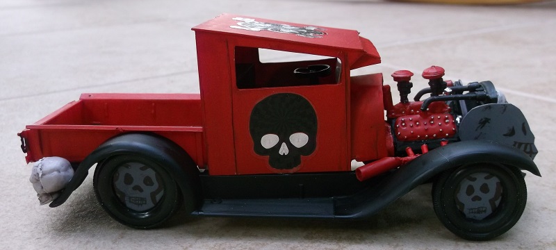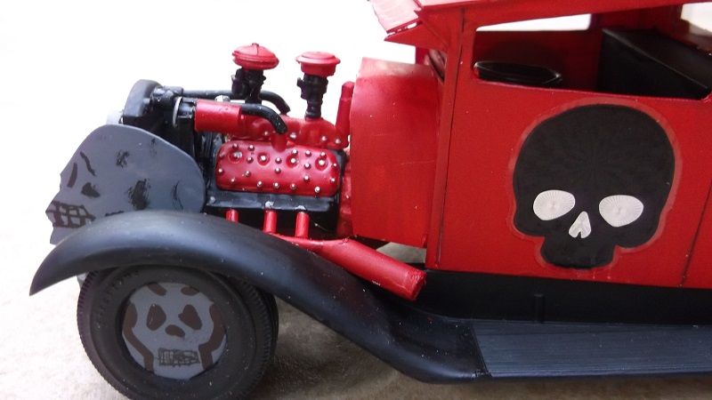 The wheels are painted skulls on plastic, as is the skull on the sides of the grill.