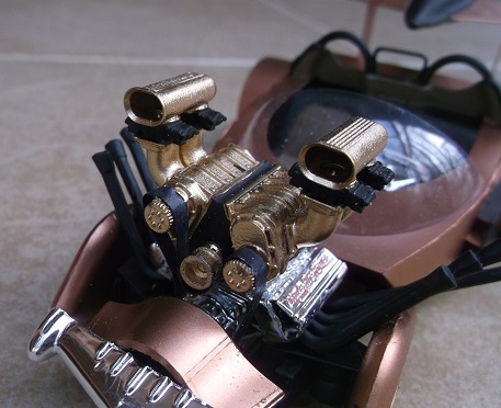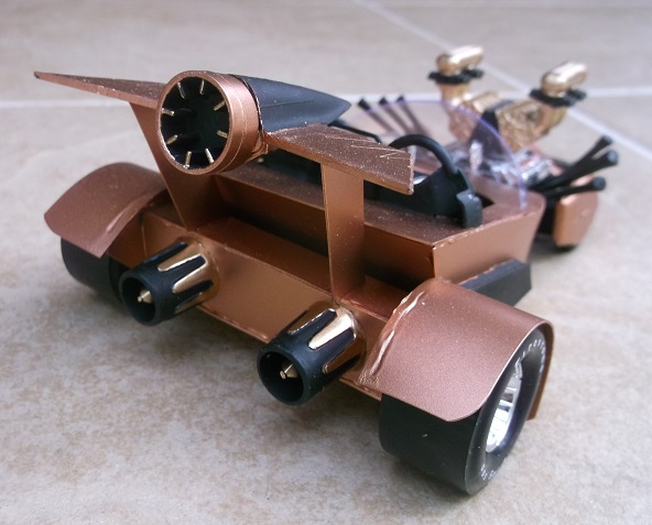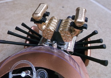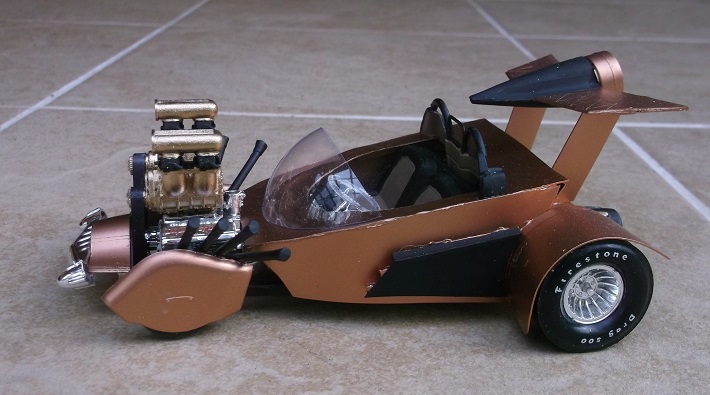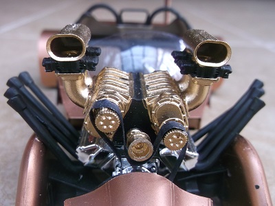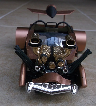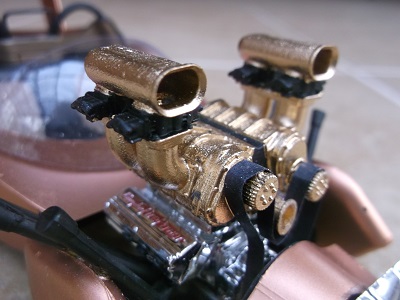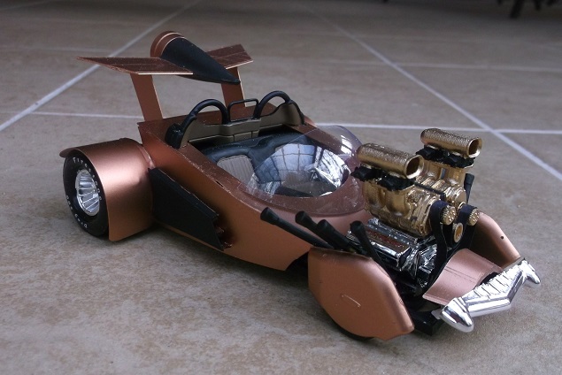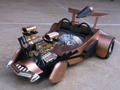 There's a lot of stuff going on here. There's a twin blown Hemi engine, a rocket rear wing and a Mercury grille.