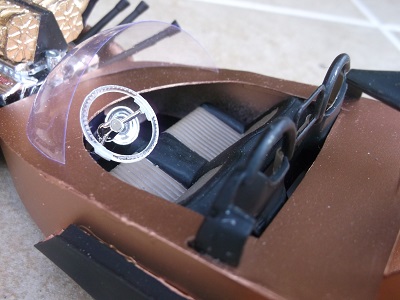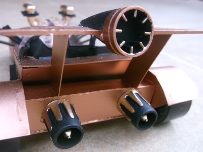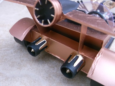 The rocket rear wing and rocket nozzles underneath are caps from cement tubes.