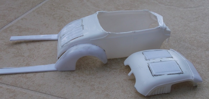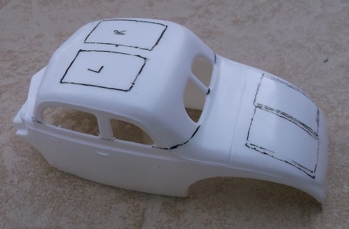 I marked on the 40 Ford coupe where I wanted to cut out so I could replace it with louvres.