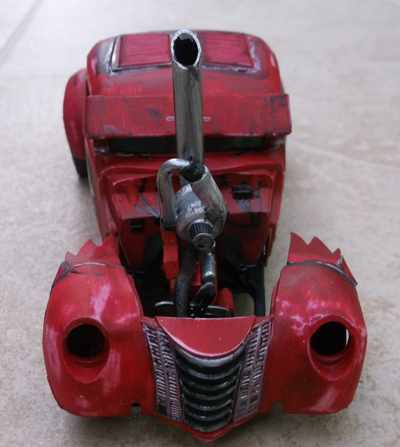 I banged up the body, painted in welds and aged the paint to achieve the look I wanted.