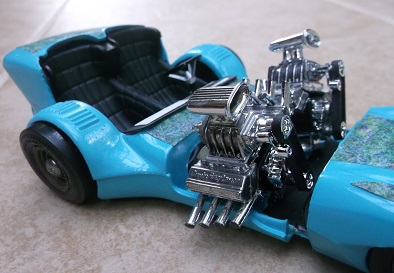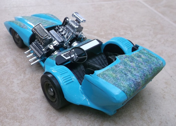 After painting the car, I found there was just too much turquoise, so I glued on some colorful patterns.