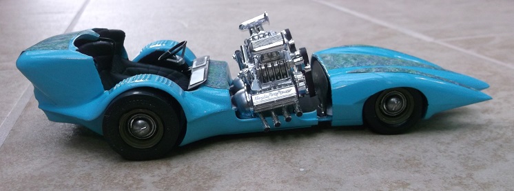 I widened the dragster body and attached the Speedracer front fenders.
