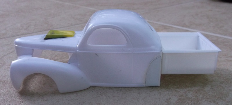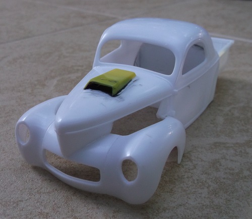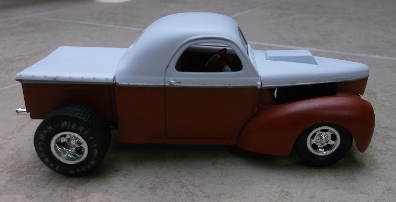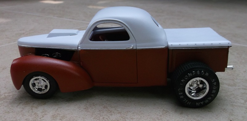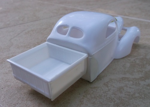 I chopped off the truck, added a short pickup bed, put on a hood scoop and opened up the cowling so the engine would be visible.