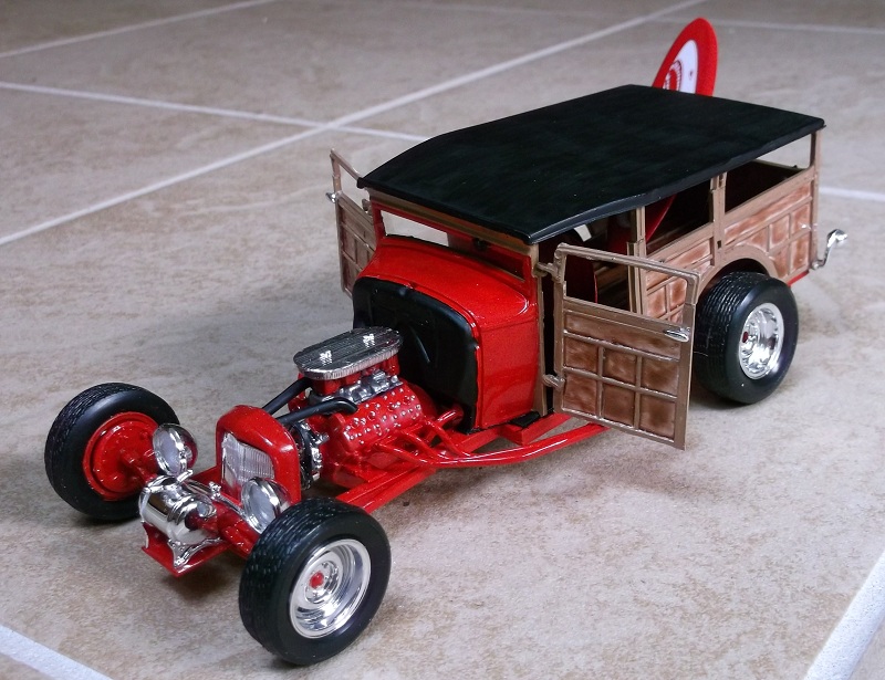I chopped the roof of this Woody and put in a flat head Ford engine.